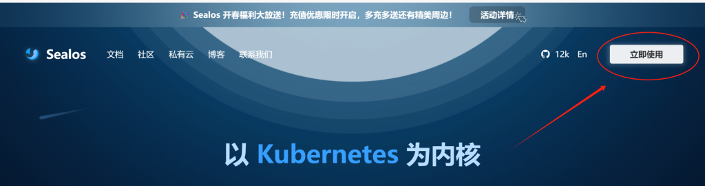 1 点击Sealos: 专为云原生开发打造的以 K8s 为内核的云操作系统,点击立即使用