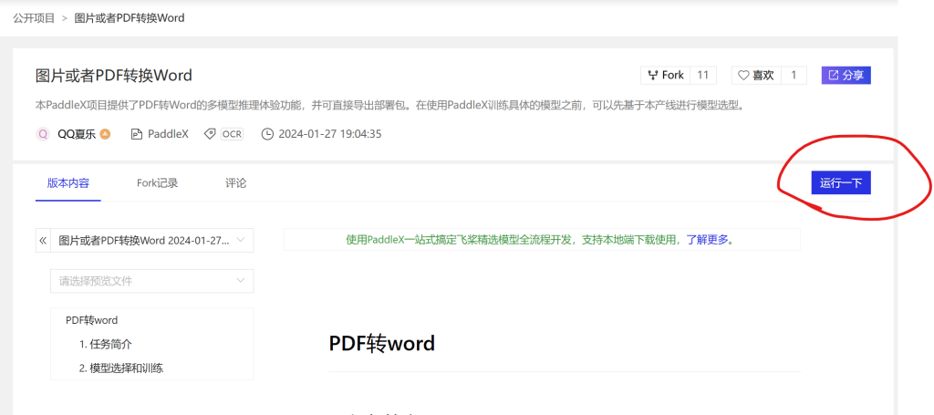 2 点击项目地址图片或者PDF转换Word – 飞桨AI Studio星河社区 (baidu.com)